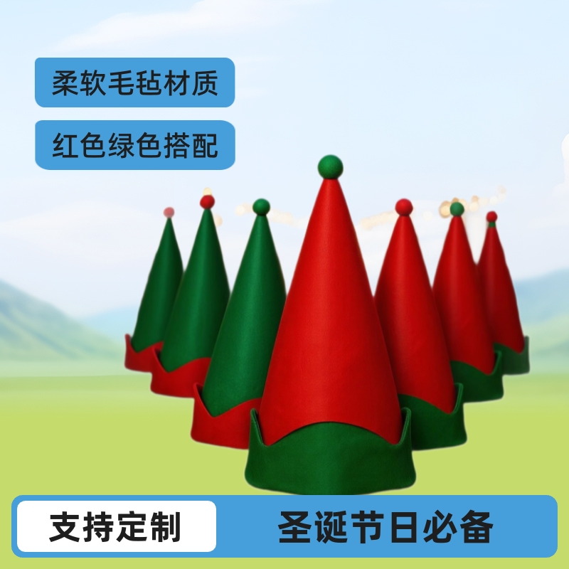 跨境货源彩色毛毡圣诞帽圣诞节老人红色折叠假日派对礼品帽子