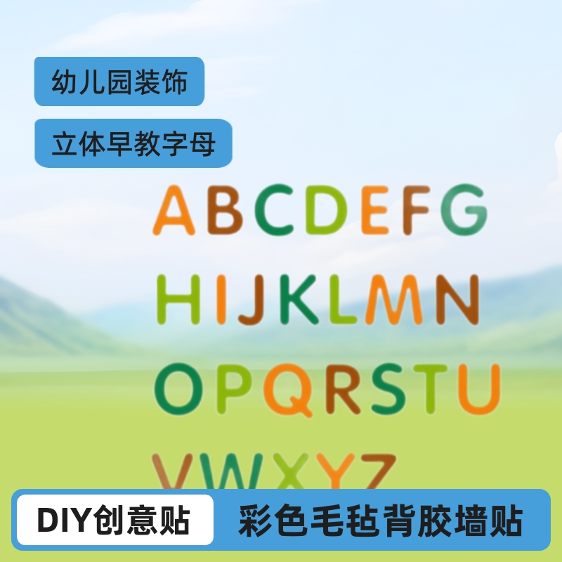 跨境字母贴背胶毛毡板幼儿园宝宝益智早教学习板立体毛毡魔术贴