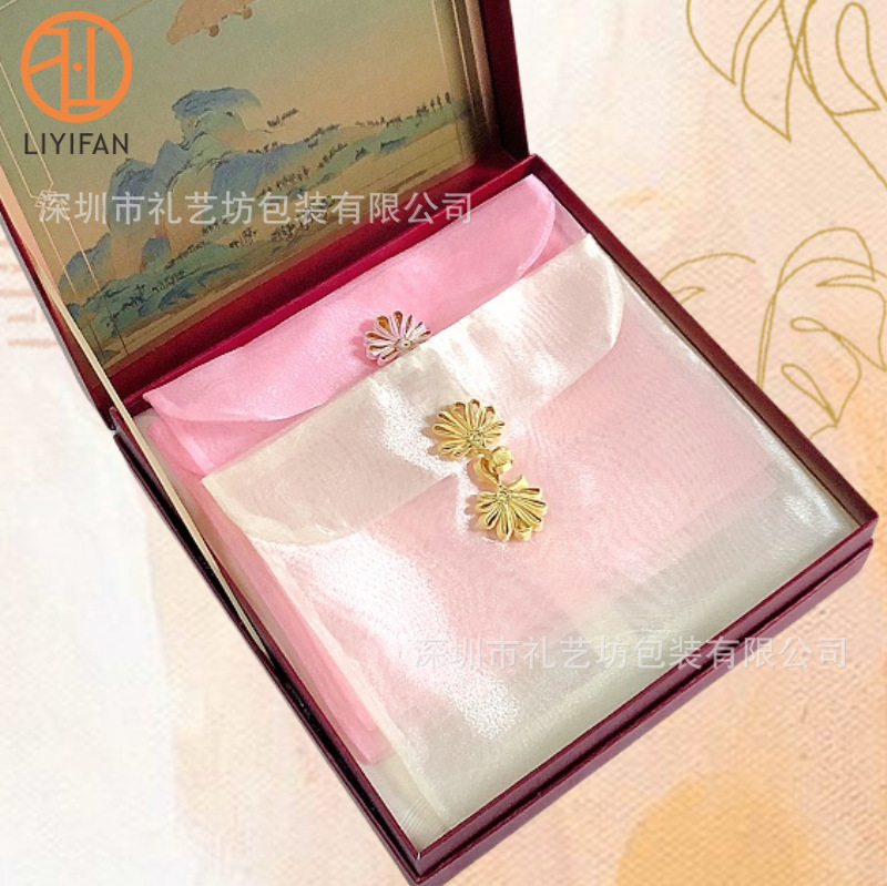 雪紗三根纱翻盖袋内衣内裤新中式国风旗袍丝巾欧根纱盘扣纱袋