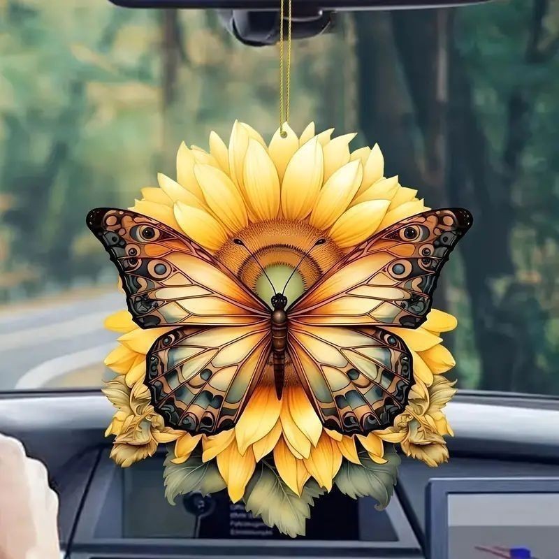跨境新款亚克力平面向向日葵蝴蝶车载装饰挂件