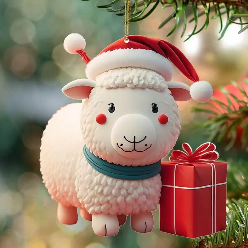 亚马逊10只节日卡通羊圣诞树装汽车背包饰品 亚克力装饰品挂件