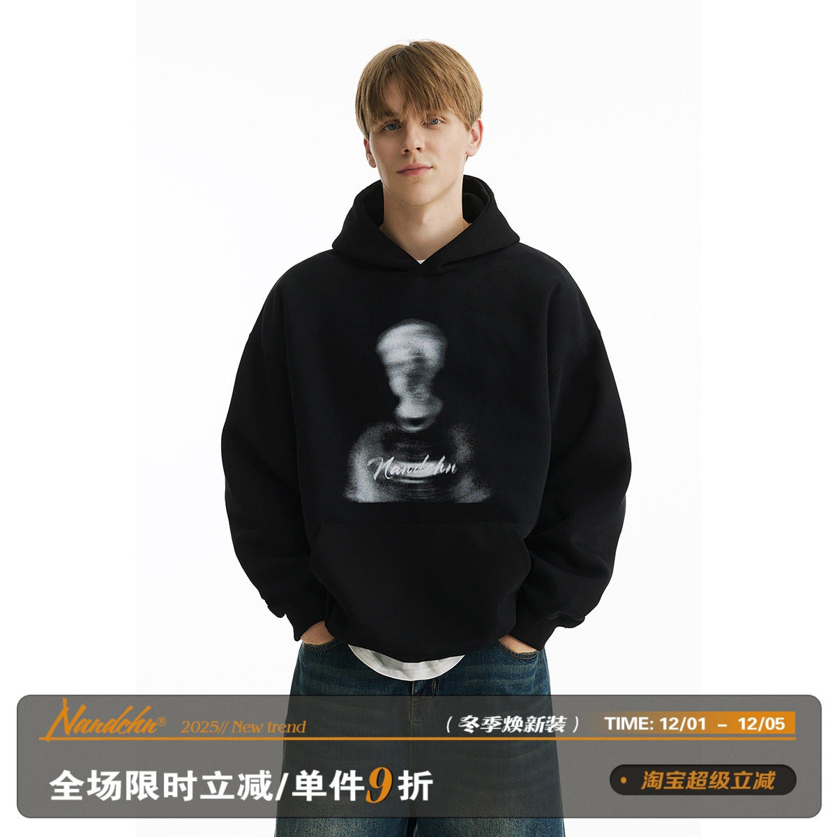 【同款蔡旭坤】无骨弧形哥特b型印花连帽运动衫情侣款厚重连帽衫