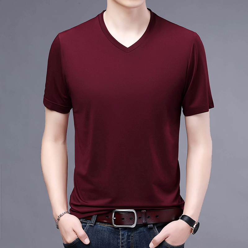 男士短袖t恤夏季薄上衣外贸亚马逊简约休闲纯色冰丝V领t恤男夏天