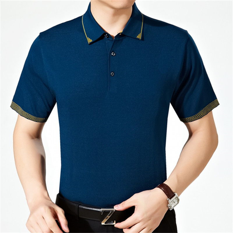 外贸男装夏季中年短袖翻领t恤男薄款宽松简约百搭纯色男士T恤有领