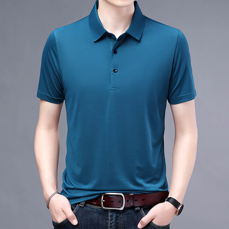 翻领t恤短袖男款直播热销款凉感坠感轻奢纯色休闲商务男士t恤夏季