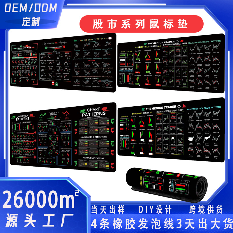 temu热销英文股市鼠标垫超大号耐脏办公桌垫橡胶防滑垫可接急单