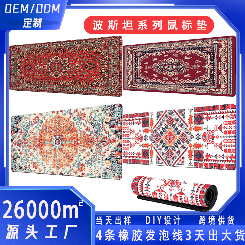 跨境民族风波斯鼠标垫高级感超大办公复古桌垫橡胶防滑可接急单