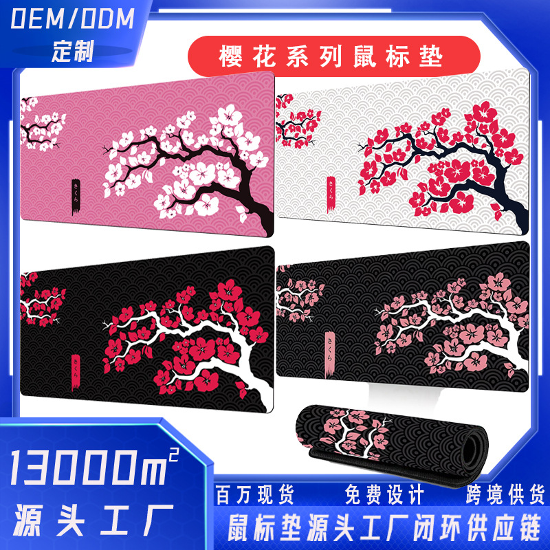 外贸热销系列国潮樱花鼠标垫大办公桌垫mouse pads 橡胶防滑桌垫