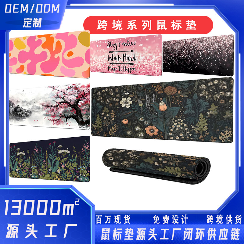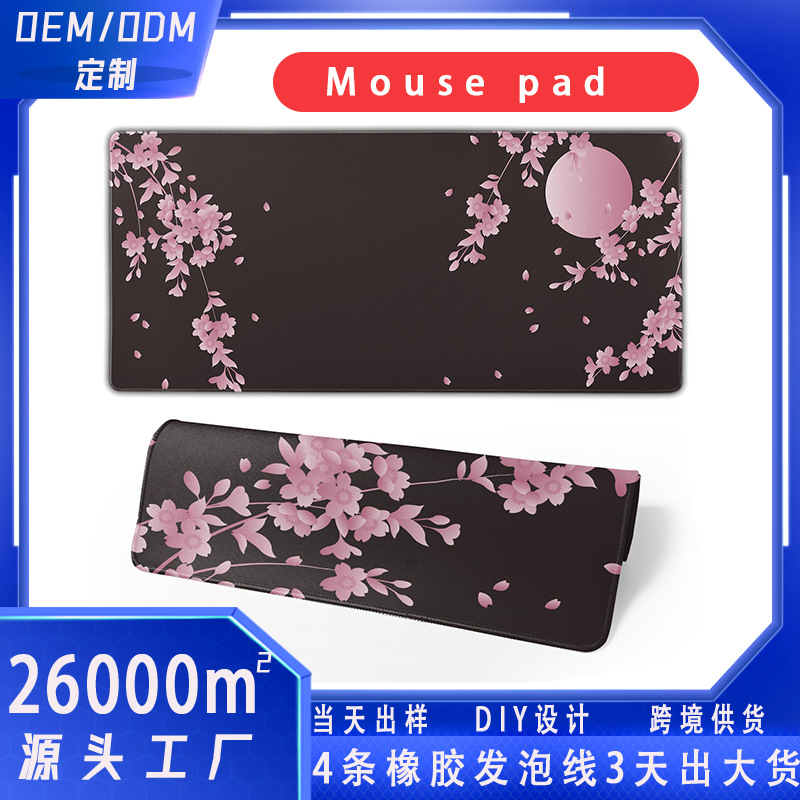 跨境热销亚马逊纹理樱花鼠标垫电竞超大号桌垫国潮风设计橡胶防滑