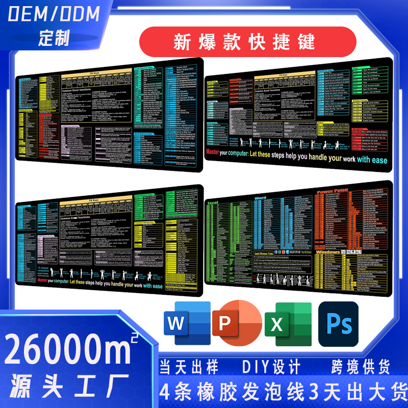 跨境热销英文快捷键鼠标垫超大办公电脑欧美热销mousepad可接急单