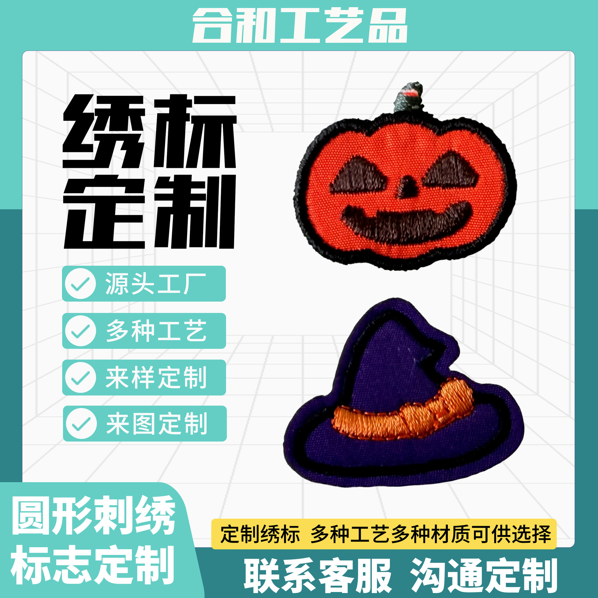 厂家定制南瓜绣花章箱包帽子织标牌魔术贴臂章logo布标绣贴批发