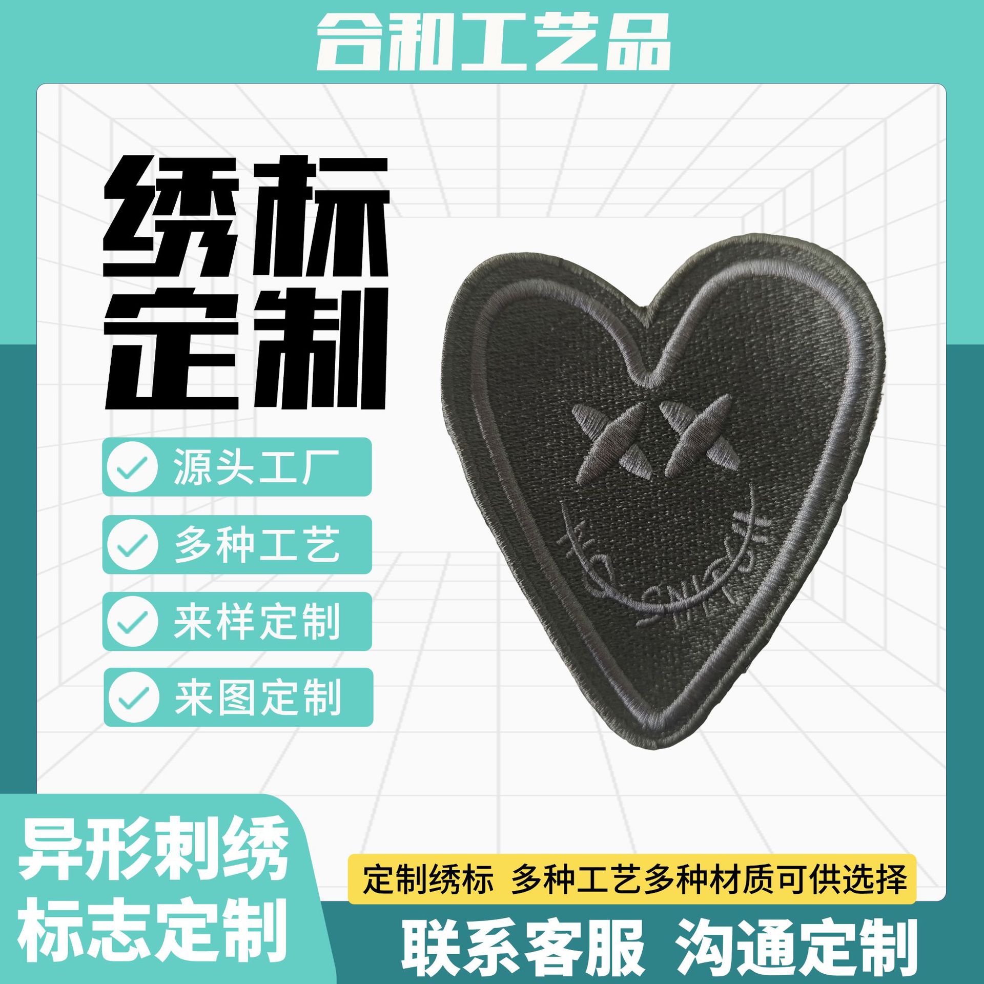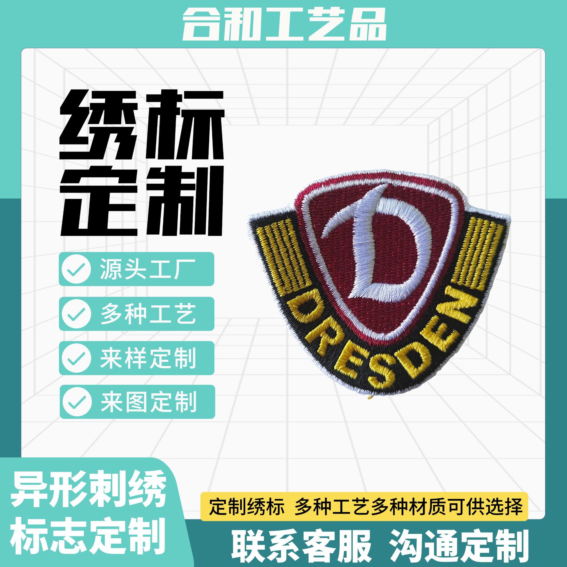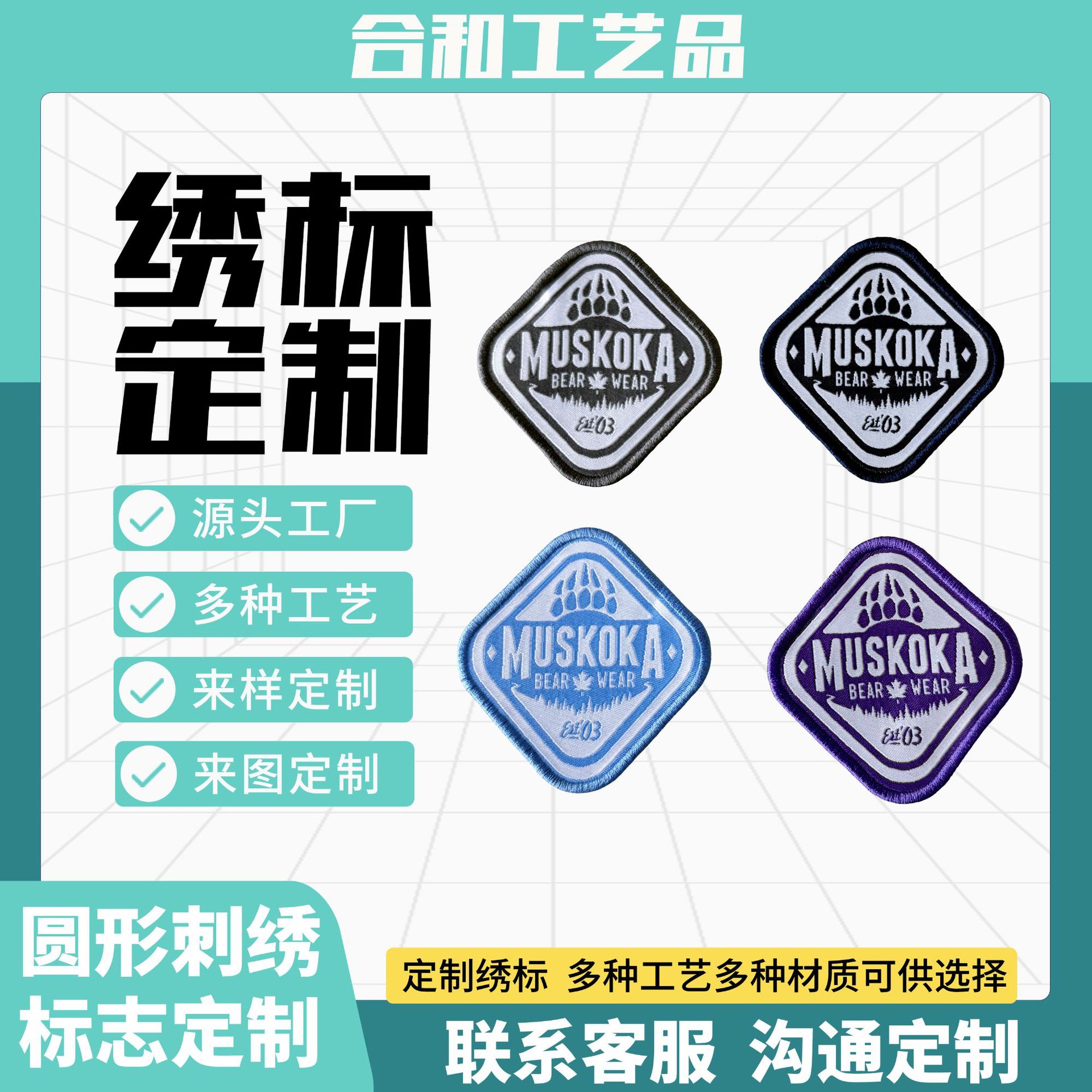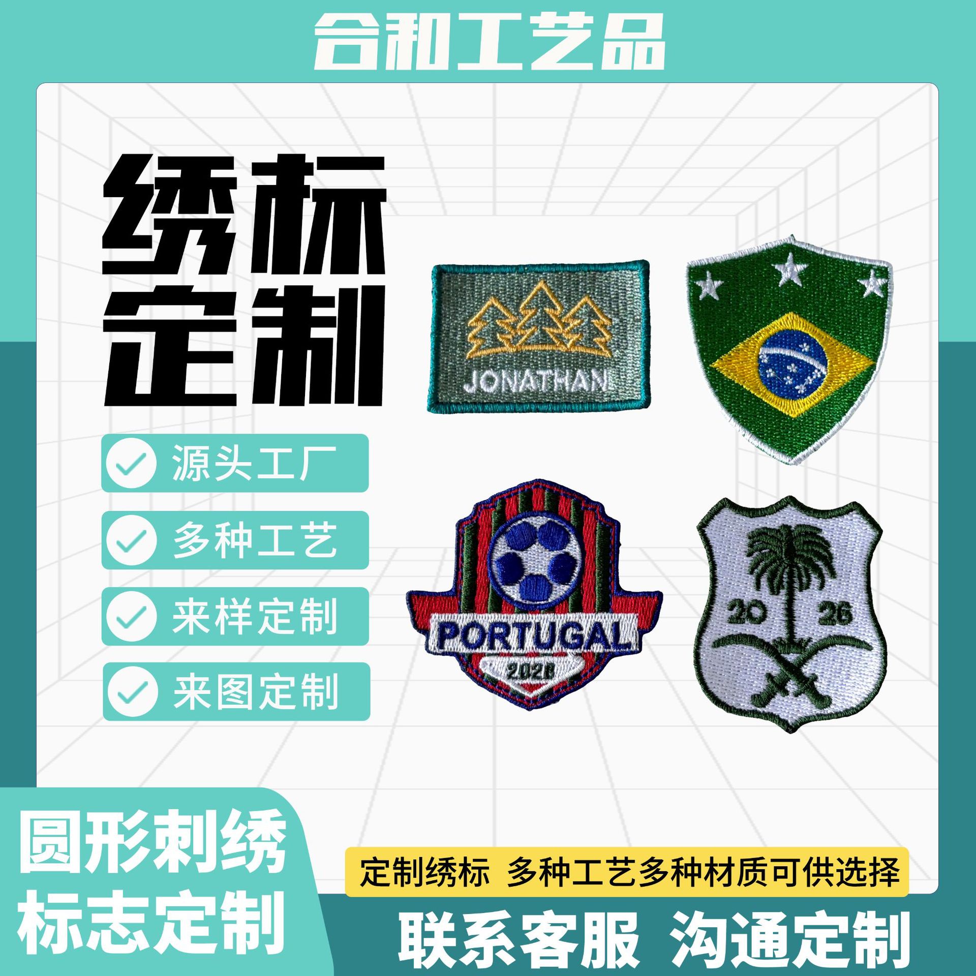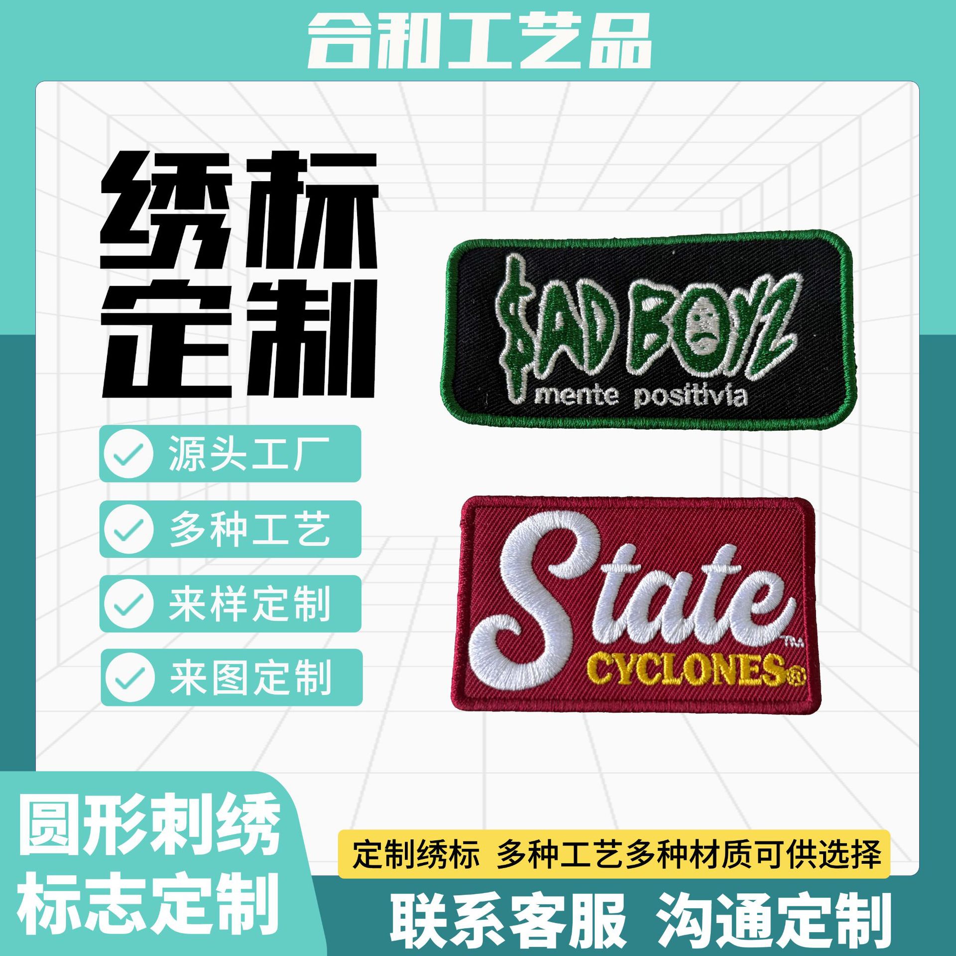 源头工厂定制刺绣绣标贴标帽子帆布包臂章印花英文绣花专业定做