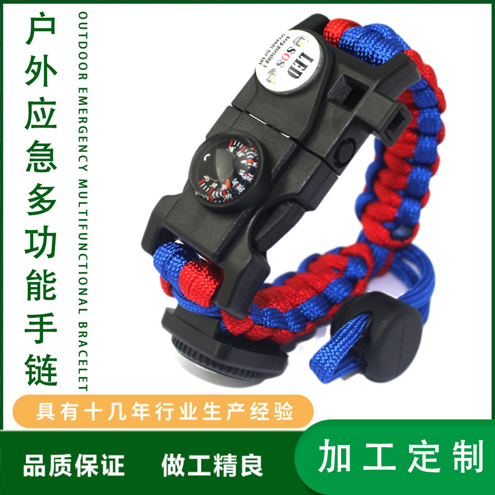 山地野营可调节手链户外生存伞绳编织手环 指南针LED应急救生腕带