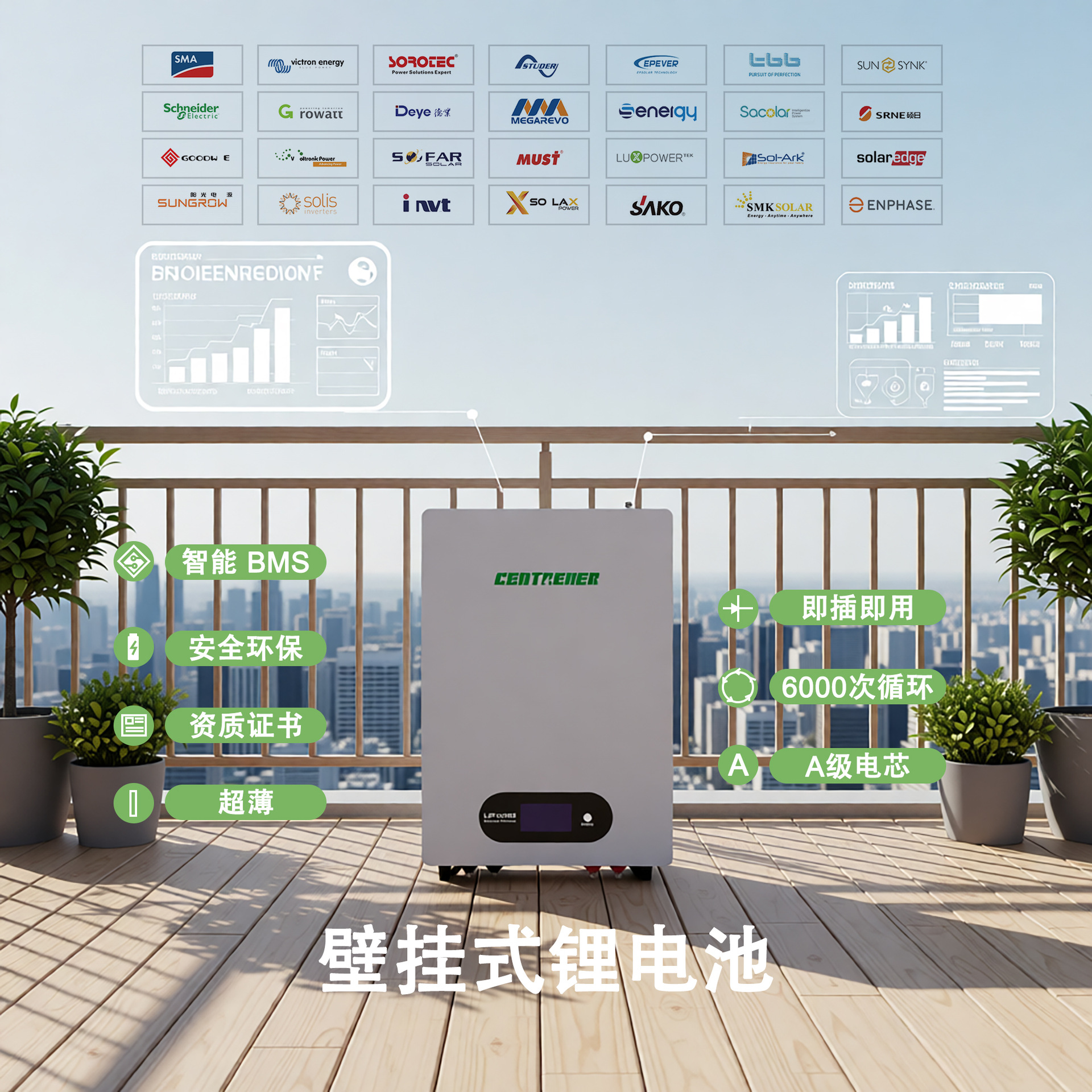 壁挂式磷酸铁锂电池 太阳能光伏家庭供电储能蓄电池51.2V厂家直销