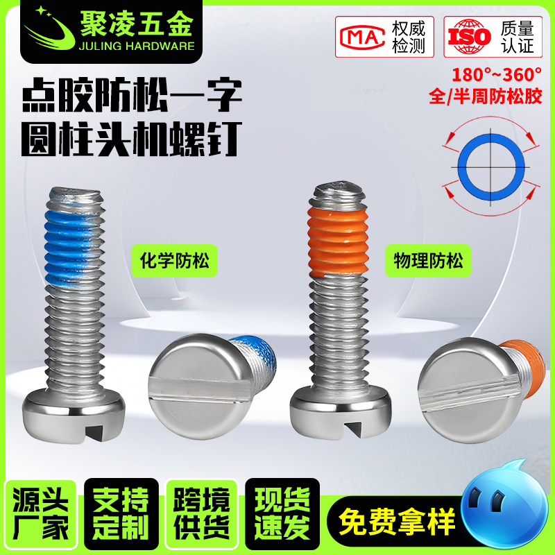 304不锈钢一字圆头开槽螺栓一字圆柱头机螺钉304点胶防松螺丝钉