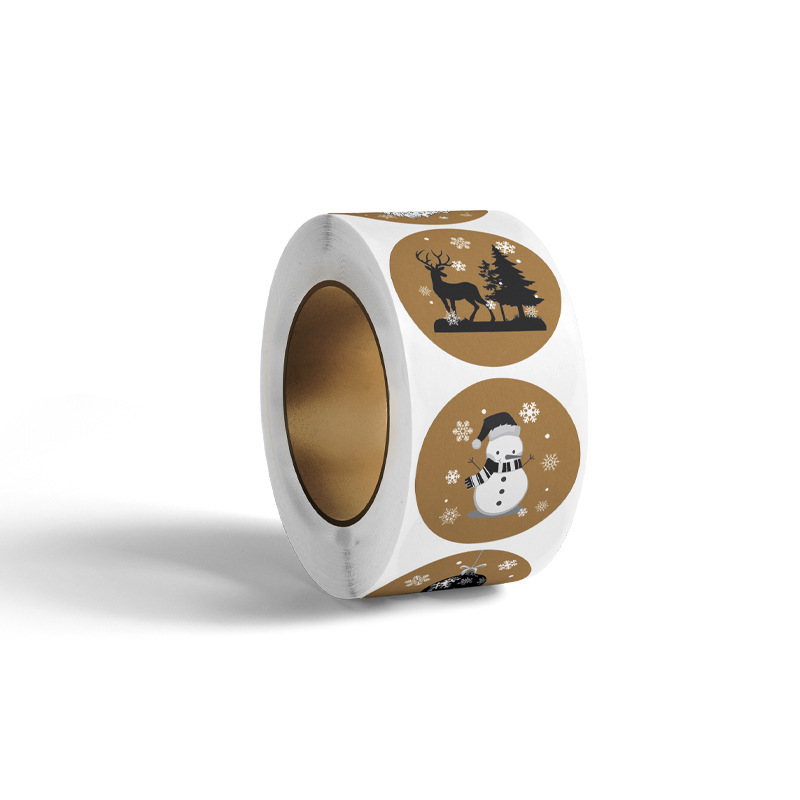 厂家现货批发黑白假日动物圣诞节贴纸礼物包装圣诞节标签500个/卷
