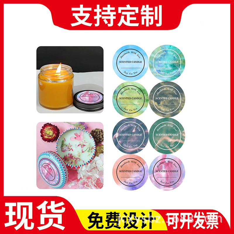 80pcs蜡烛标签 水彩渐变香薰蜡烛标签贴纸彩色图案蜡烛标识贴纸