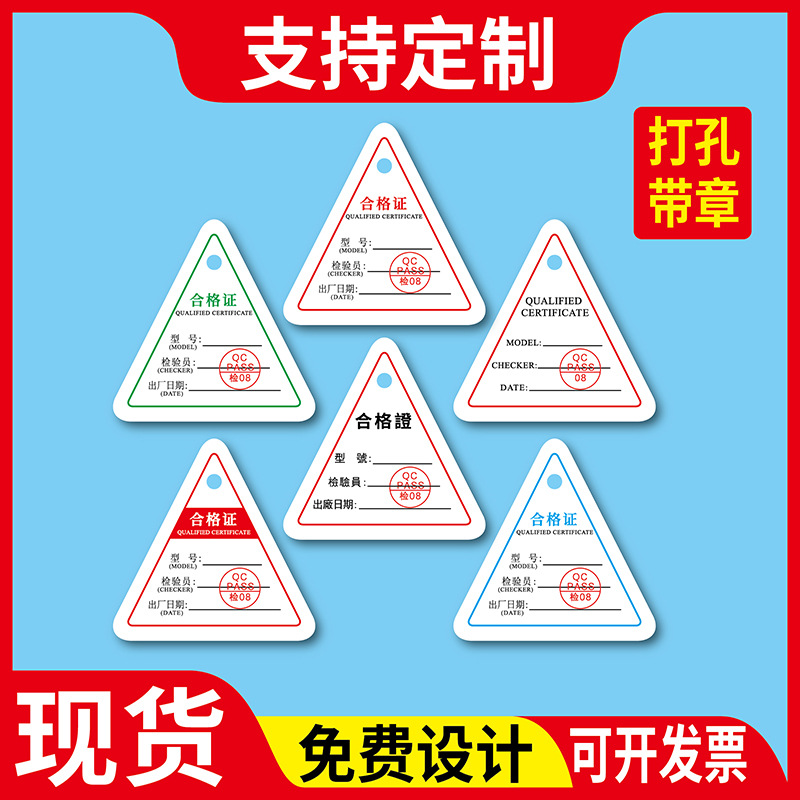 三角形通用标签批发检验合格卡片出厂证印刷食品铜版纸合格证制作