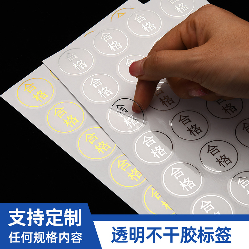 透明封口贴纸小批量制作LOGO合格证通用标签质检QC pass烫金烫银