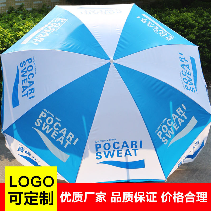 深圳太阳伞厂家宝矿力水饮料广告太阳伞印LOGO户外伞钢架中柱海滩