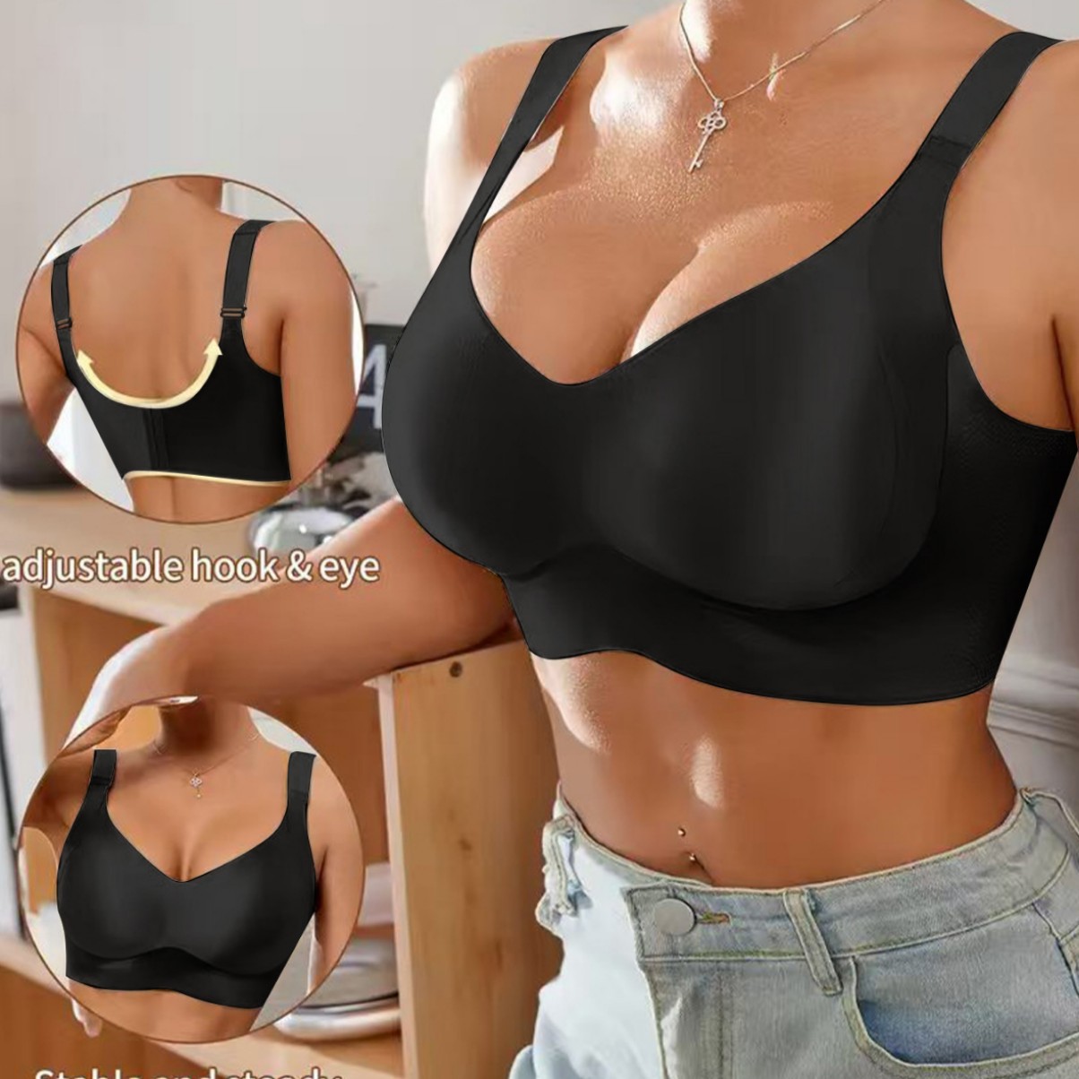 女士胸罩缎面美胸无痕文胸无钢圈带胸垫全覆盖可调节日常休闲