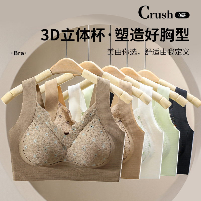 无痕蕾丝美背文胸运动内衣固定杯大胸显小胸聚拢上托防下垂收副乳