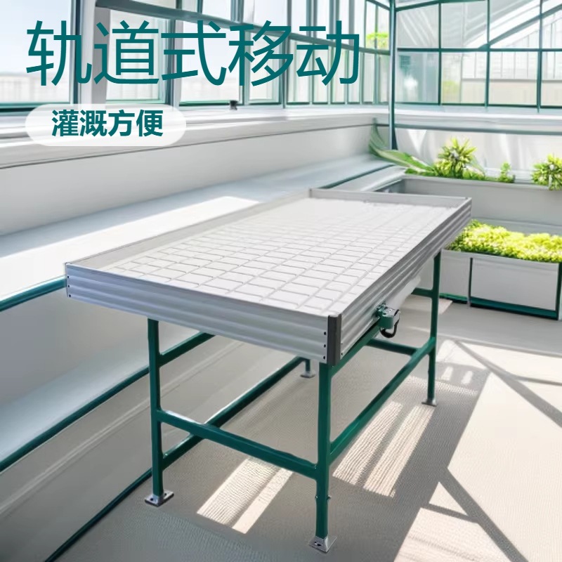 铝合金轨道式潮汐苗床温室大棚移动水培育苗床手摇推拉种植托盘