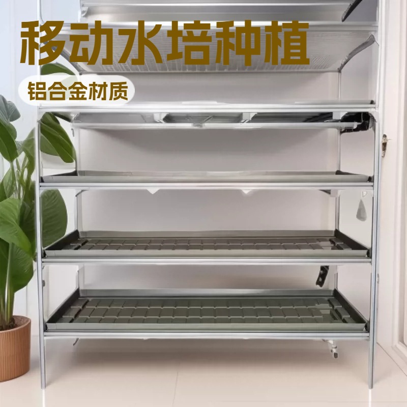 多层铝合金潮汐苗床移动水培种植架温室大棚育苗架带轮轨道式