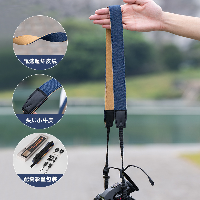 亚马逊拍立得相机背带中性窄宽款减压斜跨微单反蓝色牛仔相机肩带