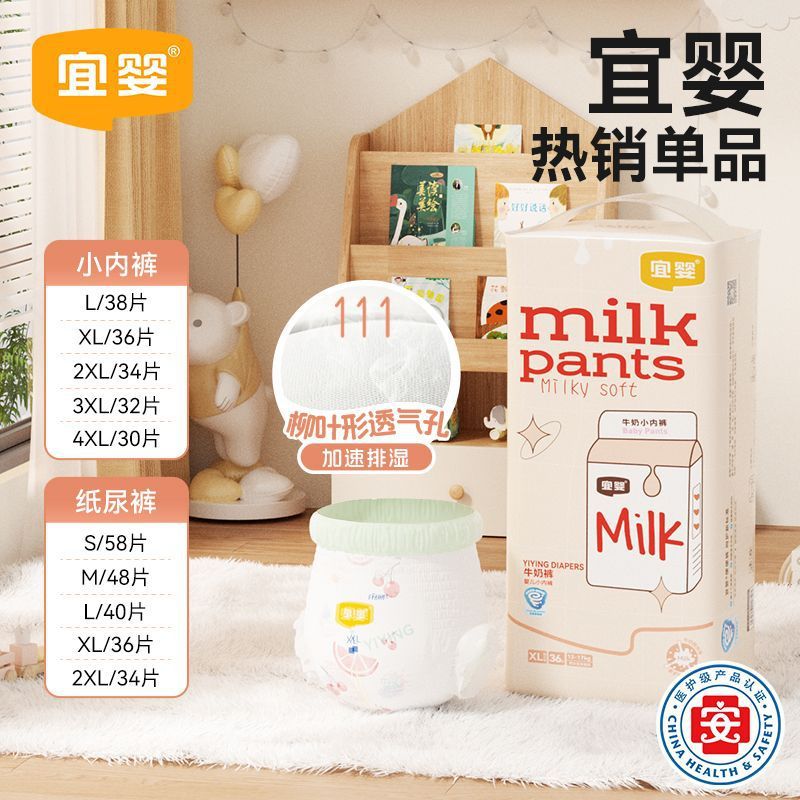 宜婴纸尿裤牛奶裤型泡泡柔软拉拉裤隔尿大吸量尿不湿NB/XXXXL