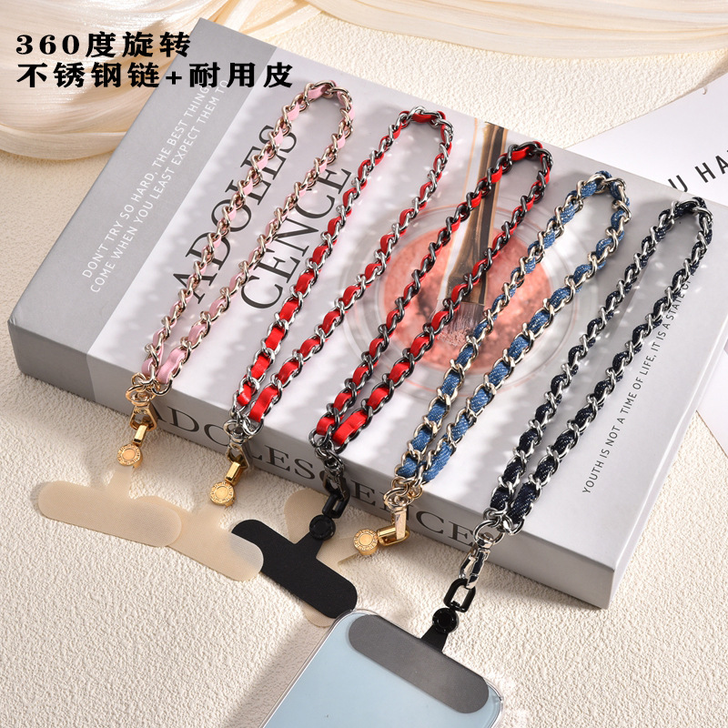 轻奢小香风不锈钢链穿皮手机壳挂绳防丢手腕带短款手机链链条