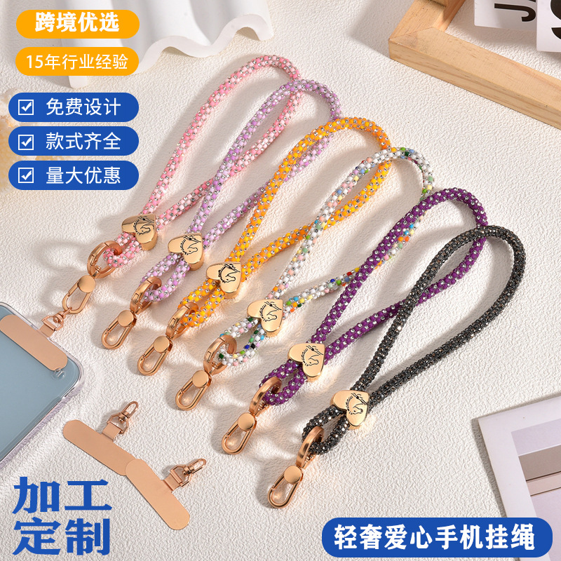 轻奢高档爱心手机壳挂绳手机垫片闪钻手机链女款通用挂饰挂脖