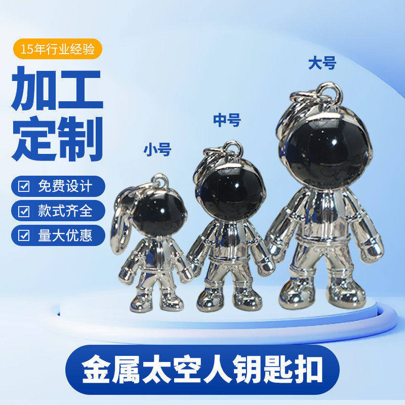 创意3D金属大中小卡通宇航员 机器人太空人钥匙扣 太空人挂件