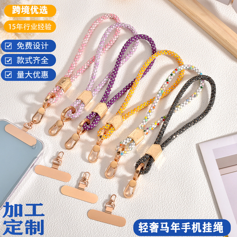 轻奢高档马年手机壳挂绳手机垫片闪钻手机链手机女款通用手机挂饰