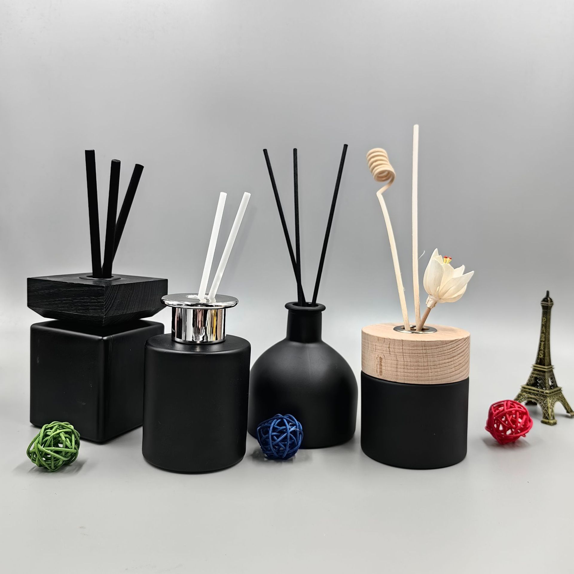 无火香薰玻璃瓶哑黑空瓶酒店厕所扩香瓶家用黑色香氛瓶藤条挥发瓶
