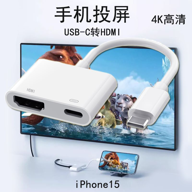 USB type-c转HDTV 4K60Hz高清PD100W适用苹果15华为手机连接电视