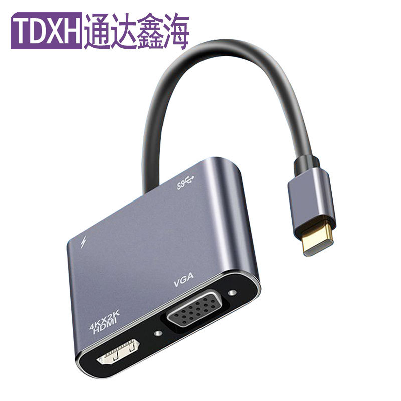 厂家直销typec转hdmi vga扩展坞四合一转换器+usb+pd供电拓展坞