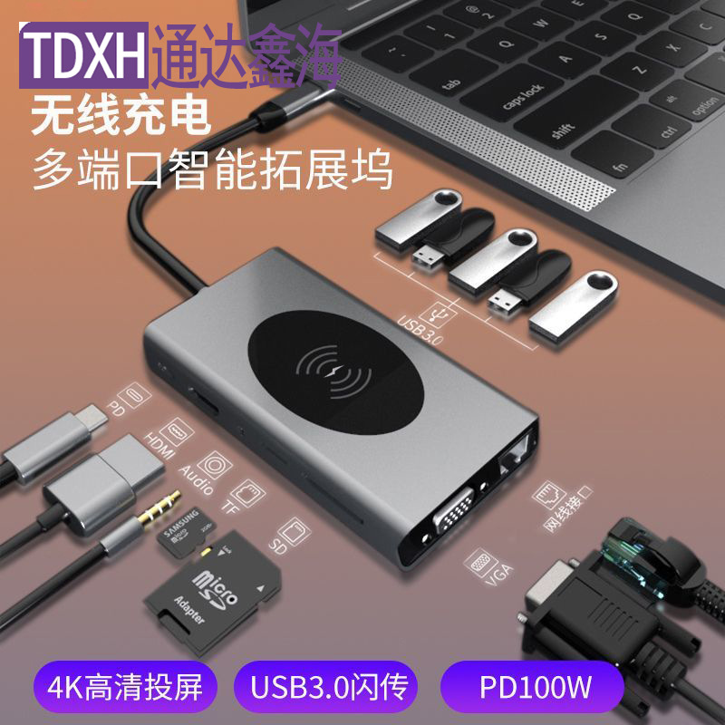 13合1Type-c无线充电扩展坞电脑千兆网口usb hub多功能集线器中性