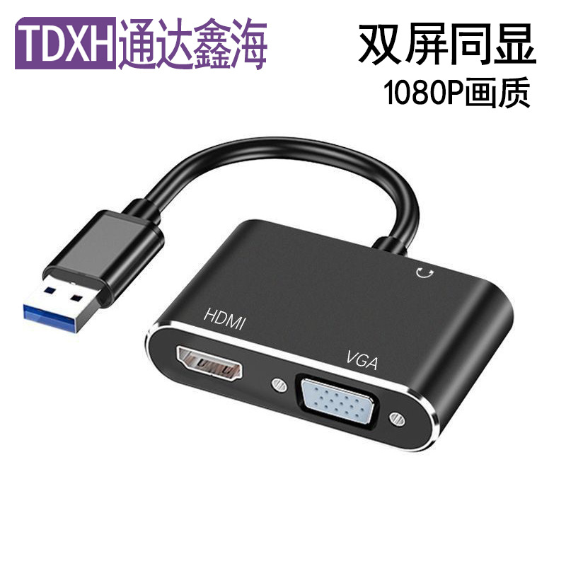 USB3.0转HDMI+VGA+音频高清视频转换器 二合一转接双口输出声音