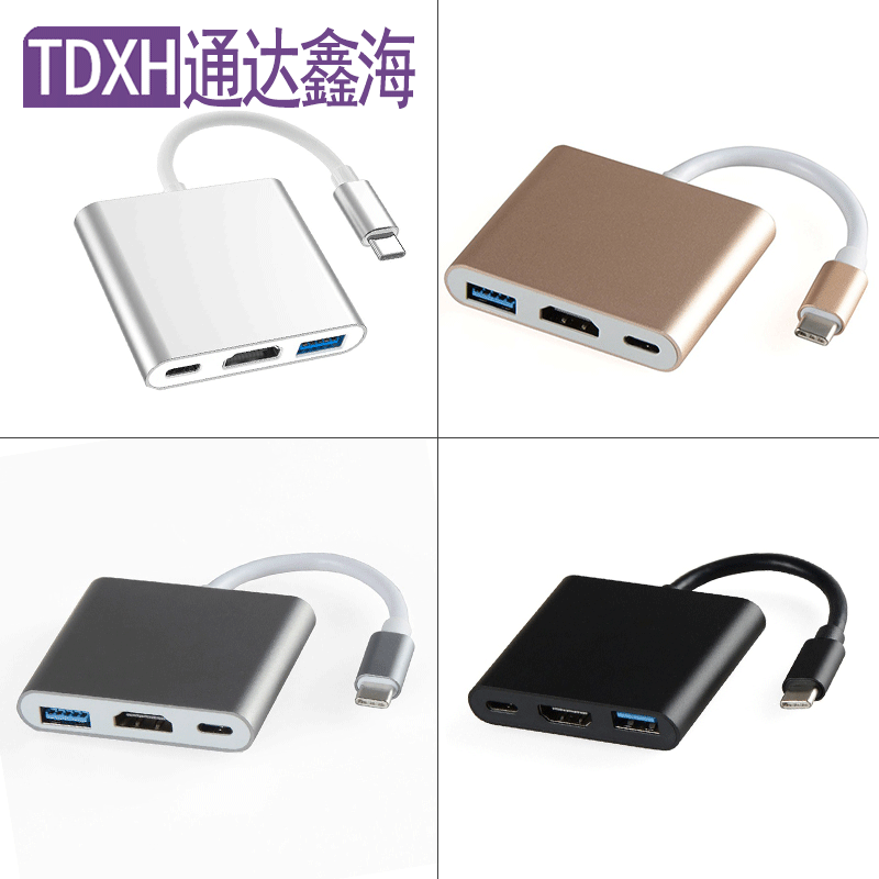 跨境批发Type-c转hdmi三合一拓展坞 笔记本hub电脑type-c转接器