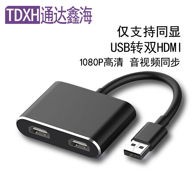 USB转HDMI转换器1080P高清 音视频同 USB3.0转双HDMI一分二同显频