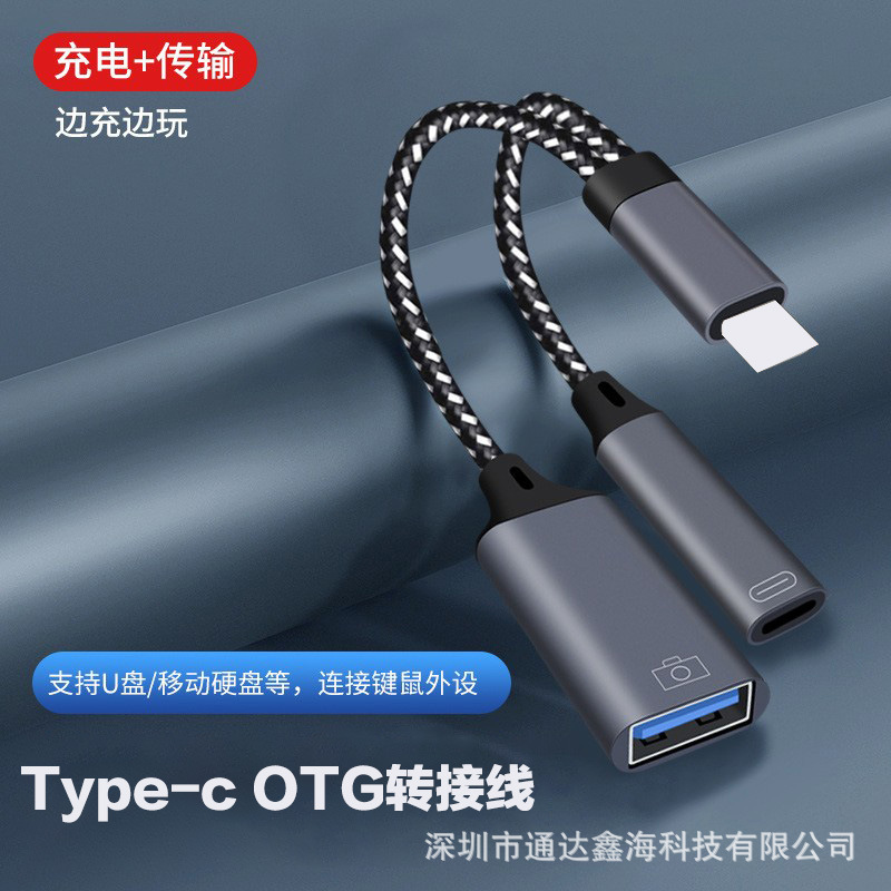 适用type-c二合一转接头OTG多功能U盘鼠标读卡器ipadpro转接线10W