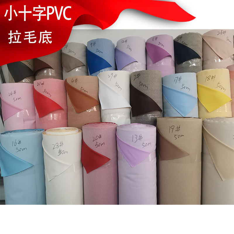 小十字纹0.7拉毛底PVC水刺底相册沙发软包面料文具用品包装人造革