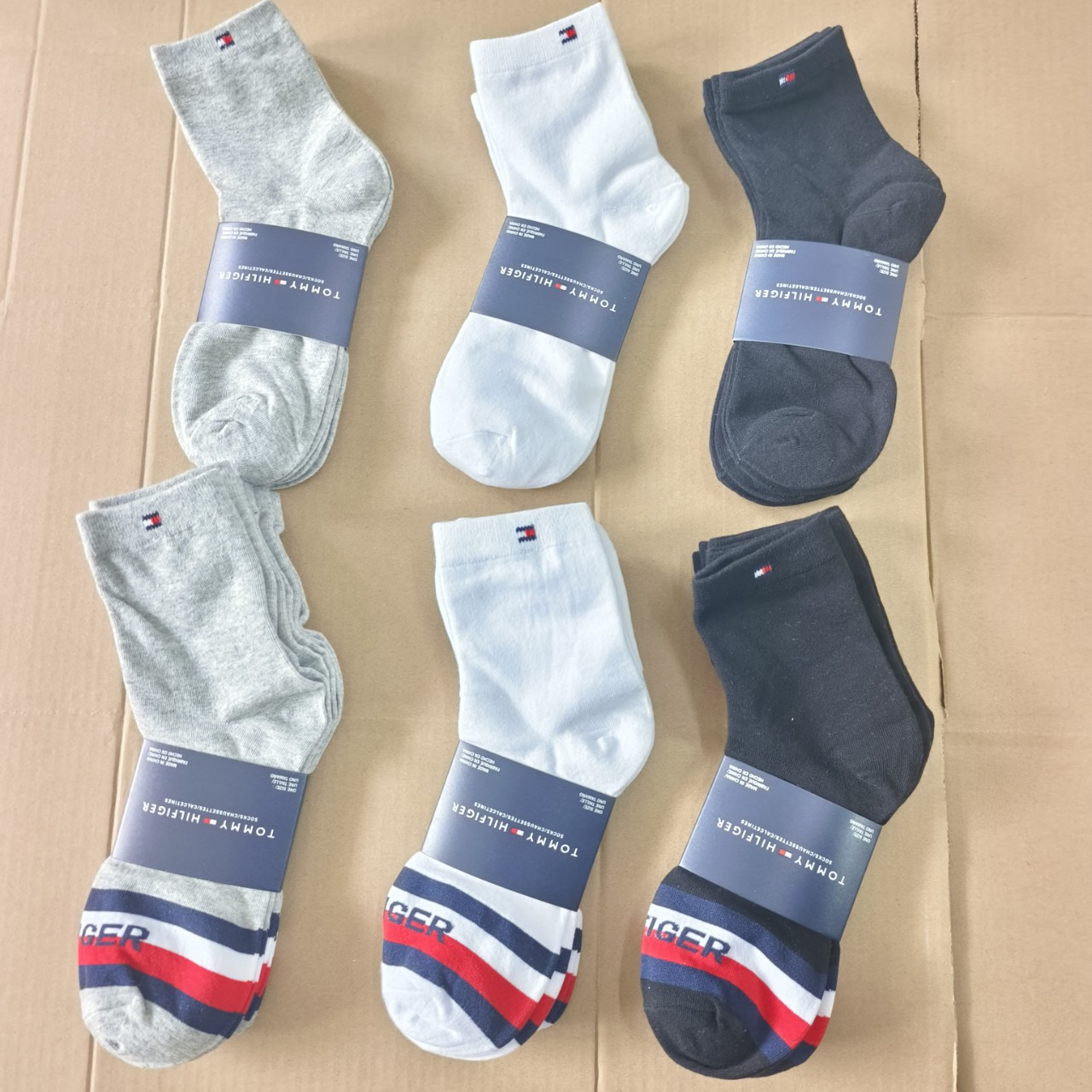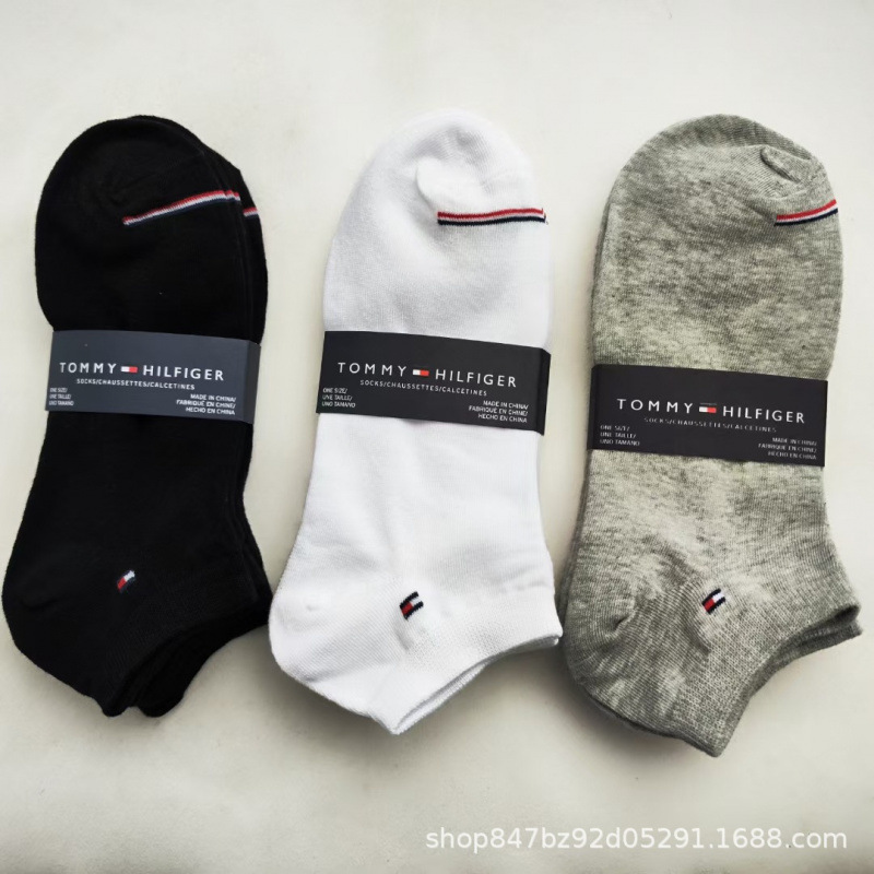 外贸汤米男女中筒袜黑白灰商务袜子四季款棉袜一卡三双可代发吸汗