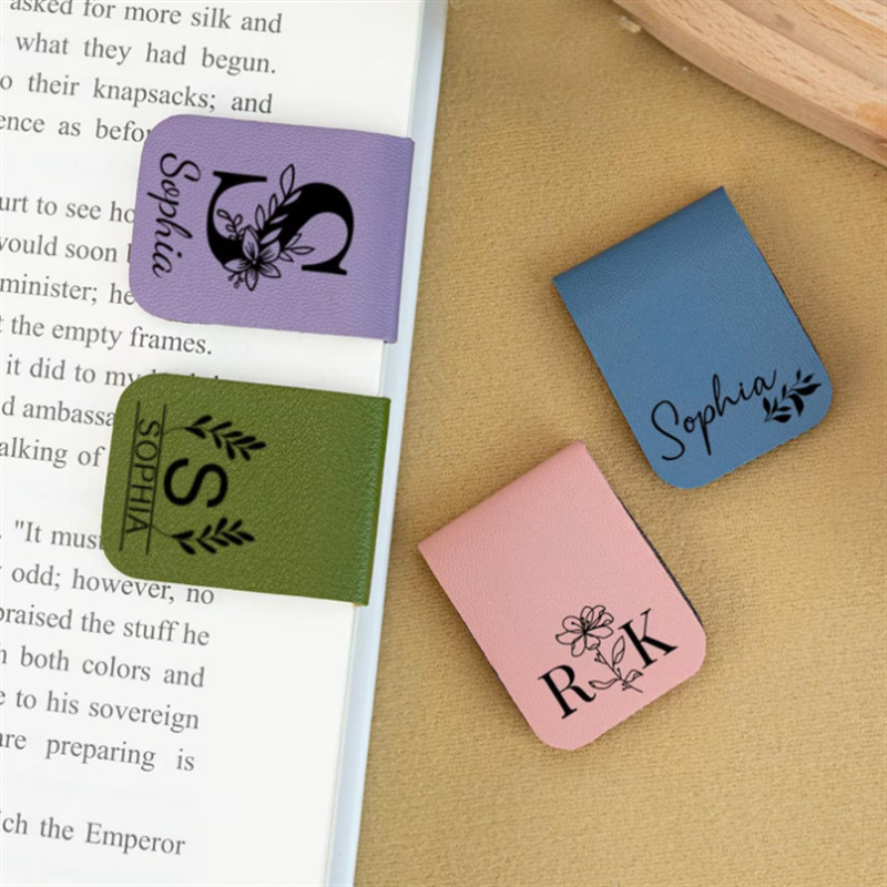 跨境雕刻激光方形磁铁书签 pu皮革软磁书签 阅读者礼物个性化书签