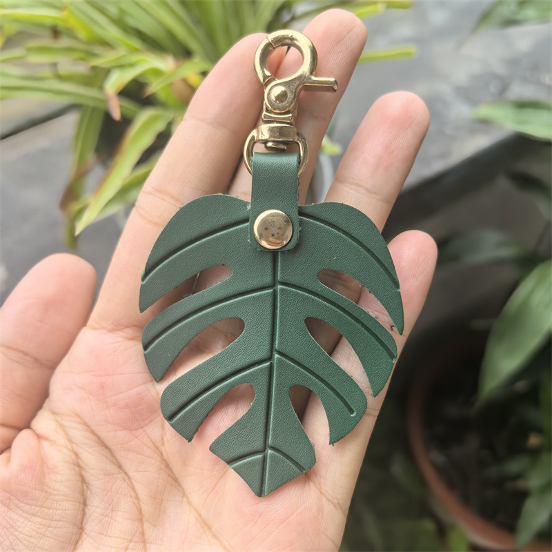 现货皮革龟背竹钥匙扣挂件 树叶形状pu皮钥匙扣包饰叶子挂饰