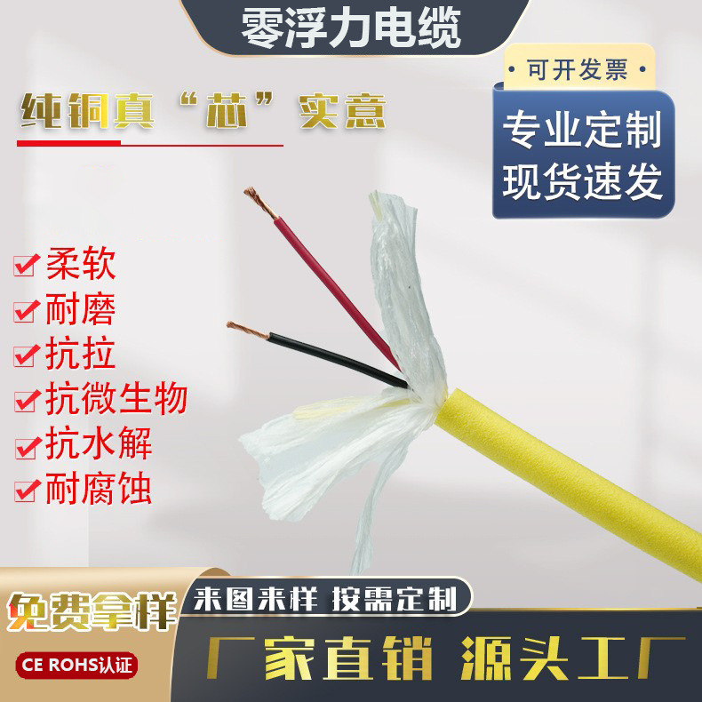 零浮力漂浮电缆线 海底水下机器人ROV 信号视频通讯线2/4芯抗拉