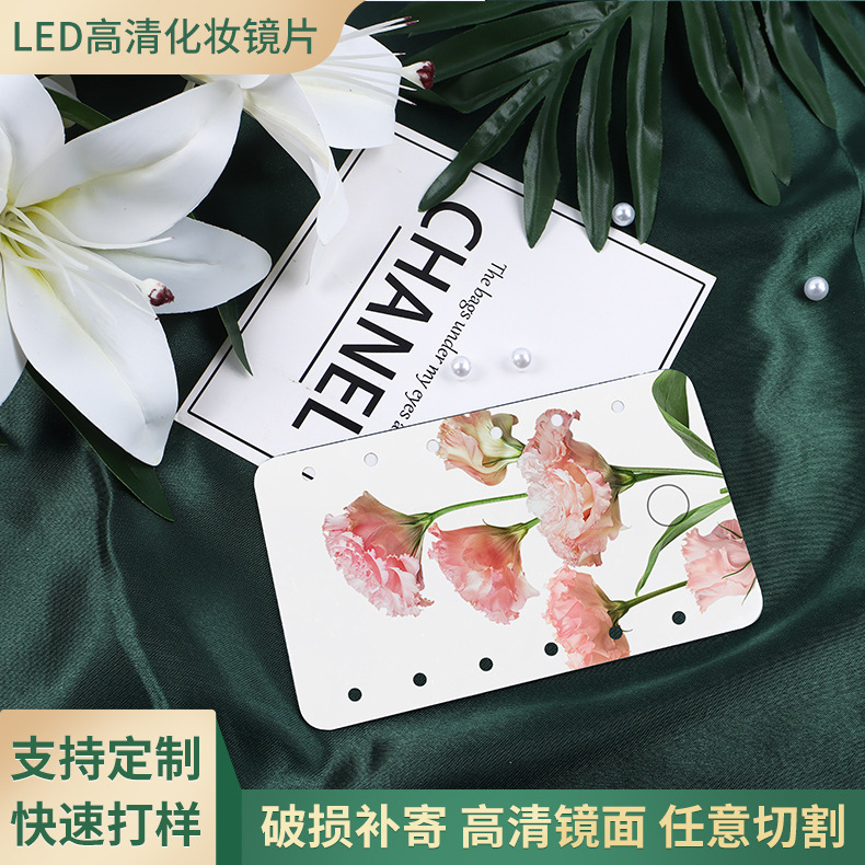 led灯化妆镜片加工宿舍圆形拍照打孔led灯玻璃化妆镜片工艺镜片