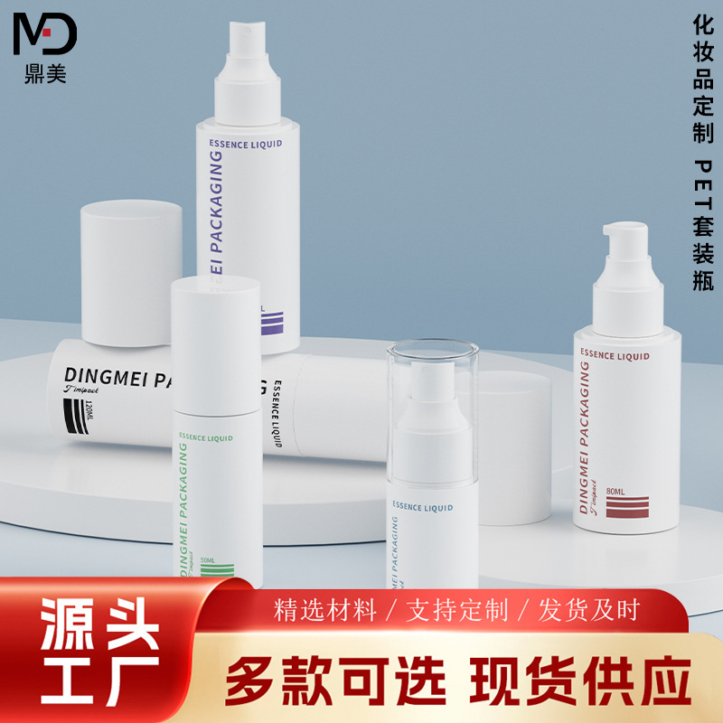定制PET白色套装瓶100ML50ML水乳瓶 喷雾瓶 化妆品分装瓶源头工厂