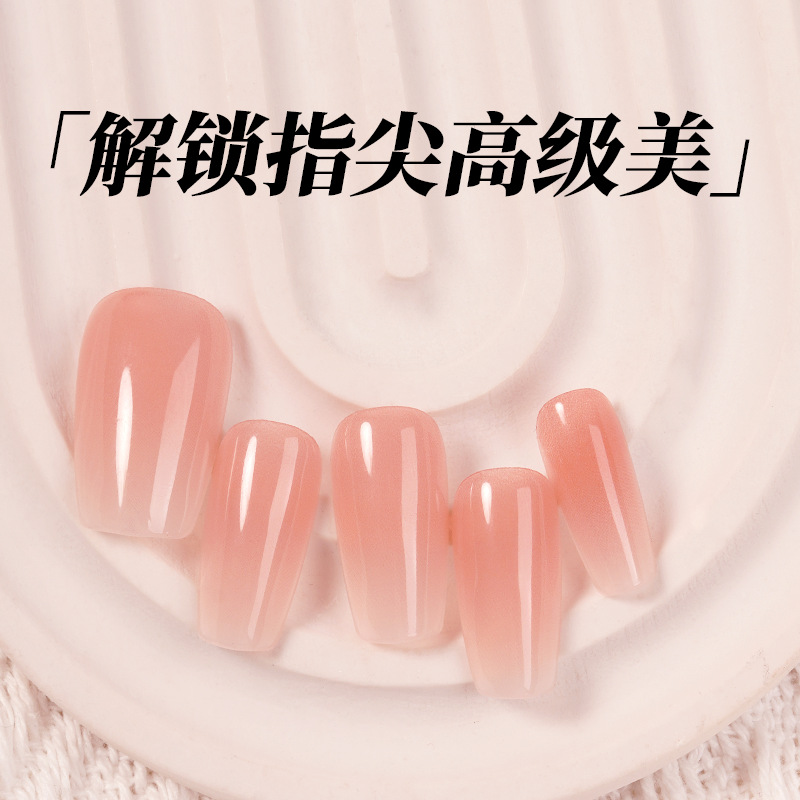 轻薄舒适手工穿戴甲温柔渐变显白腮红美甲裸色高级感指甲贴片10片